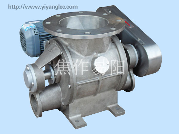 不銹鋼正壓關(guān)風(fēng)器在原有關(guān)風(fēng)器、卸料器、卸灰閥的基礎(chǔ)設(shè)施下新型改良新型產(chǎn)品,不銹鋼正壓關(guān)風(fēng)器更新了所有材質(zhì)包括關(guān)風(fēng)器、與關(guān)風(fēng)器相連的關(guān)風(fēng)器電機(jī),關(guān)風(fēng)器設(shè)置在料倉(cāng)的下料口,關(guān)風(fēng)器與送風(fēng)管道連通,送風(fēng)管道一端設(shè)有羅茨風(fēng)機(jī),其特征在于:在關(guān)風(fēng)器兩端傳動(dòng)部位設(shè)有出風(fēng)室,在風(fēng)室上部開(kāi)出進(jìn)氣口,在所述送風(fēng)管道的靠近羅茨風(fēng)機(jī)一端的殼體上開(kāi)有出氣口,出氣口通過(guò)一個(gè)分叉的氣管分別接入關(guān)風(fēng)器兩端傳動(dòng)軸部位的進(jìn)氣口,利用送風(fēng)管道中的風(fēng)力向下阻止關(guān)風(fēng)器向上的反吹的風(fēng),形成風(fēng)阻密封住關(guān)風(fēng)器。本實(shí)用新型與現(xiàn)有技術(shù)相比具有顯著的優(yōu)點(diǎn)和有益效果:耐正壓關(guān)風(fēng)器安裝在下料灰倉(cāng)的下料口,可以使在物料輸送中避免送風(fēng)反向進(jìn)入下料口而進(jìn)入下料灰倉(cāng),影響下料速度和下料量。